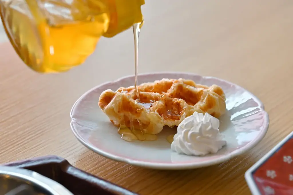 休暇村讃岐五色台のデザートで特に評価が高いのが「クロワッサンワッフル」です。クロワッサン生地をワッフル型で焼き上げるスイーツで、館内のお客様アンケートで高評価を得ています。