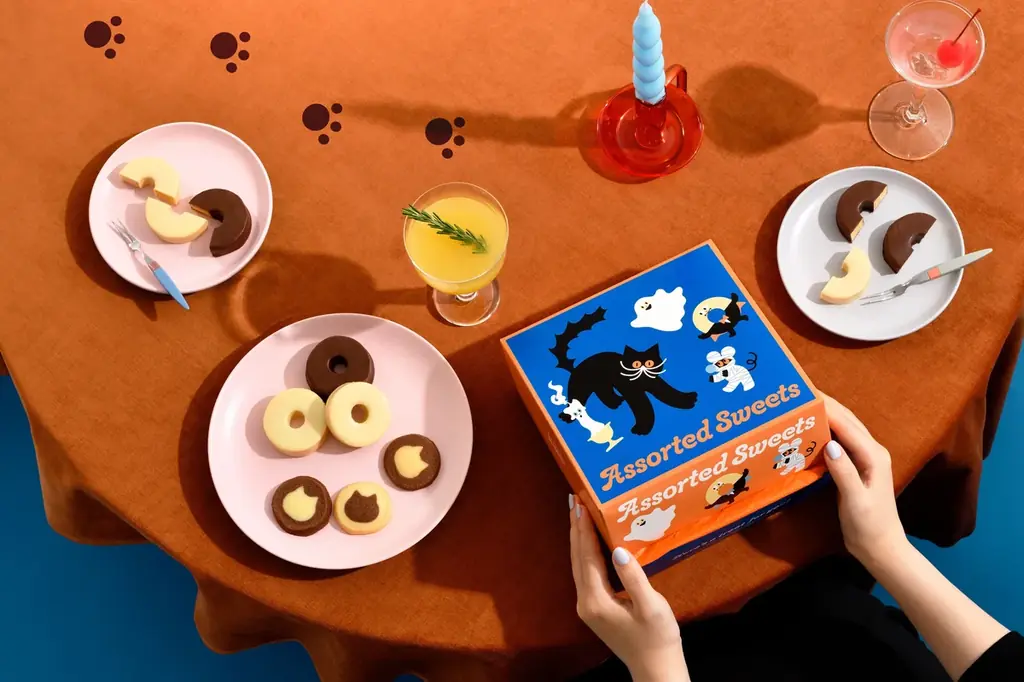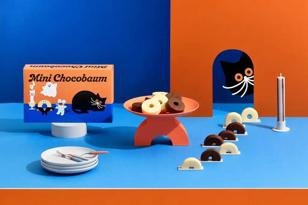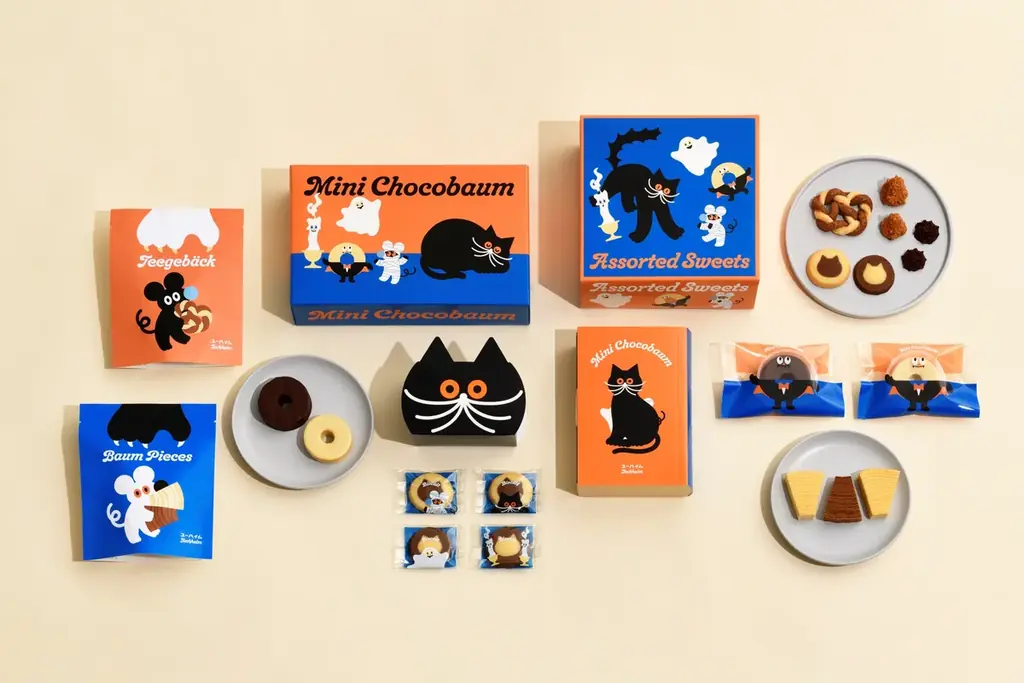 今回のコラボレーションでは、umao氏による書き下ろしアートが各パッケージに採用され、ねこちゃんやねずみくん、ユーハイムのバウムクーヘンをモチーフにしたバウムくんといったキャラクターたちが仮装やいたずらをしてにぎやかに過ごす様子が描かれています。包装を手に取る瞬間から、食べるときまでビジュアルでハロウィンの雰囲気を演出する設計です。