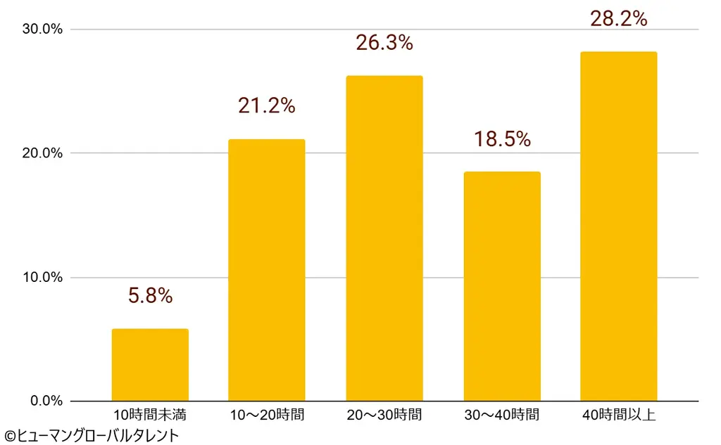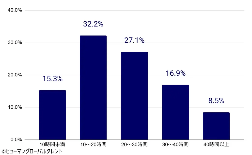 これに対して技能実習クラスでは「40時間以上」を希望する割合が最多で28.2%に上り、収入最大化を優先する傾向が強く出ています。この対照的な志向は、企業側が就労環境に合わせた人材の選別や訴求ポイントの最適化を行う上で重要な手がかりとなります。