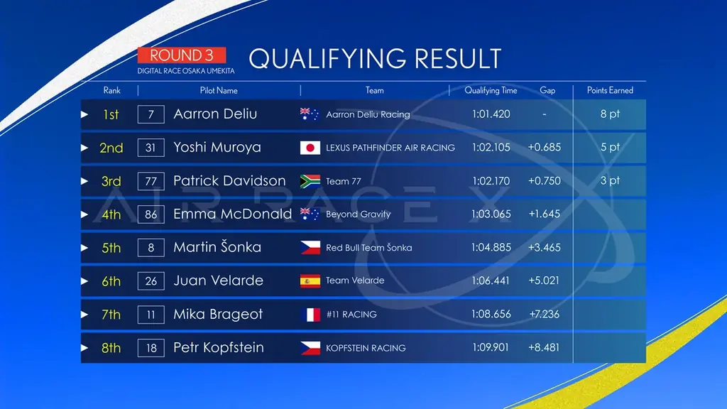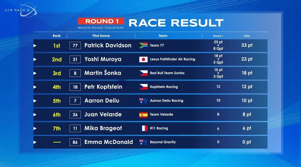 このラウンドはシリーズの序盤戦として、後半戦のポイント差や選手間の勢いを左右する意味合いがありました。(c) AIR RACE X