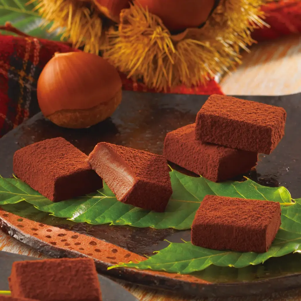 | 生チョコレート[栗] | ミルクチョコ+マロンパウダー、ラム酒・ブランデー使用 | 20粒 | 税込1,215円(本体1,125円) | 数量限定、出店先により取扱い差あり |