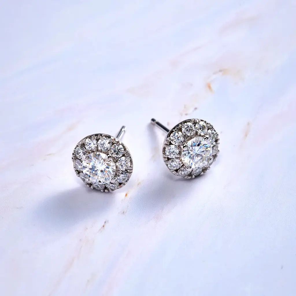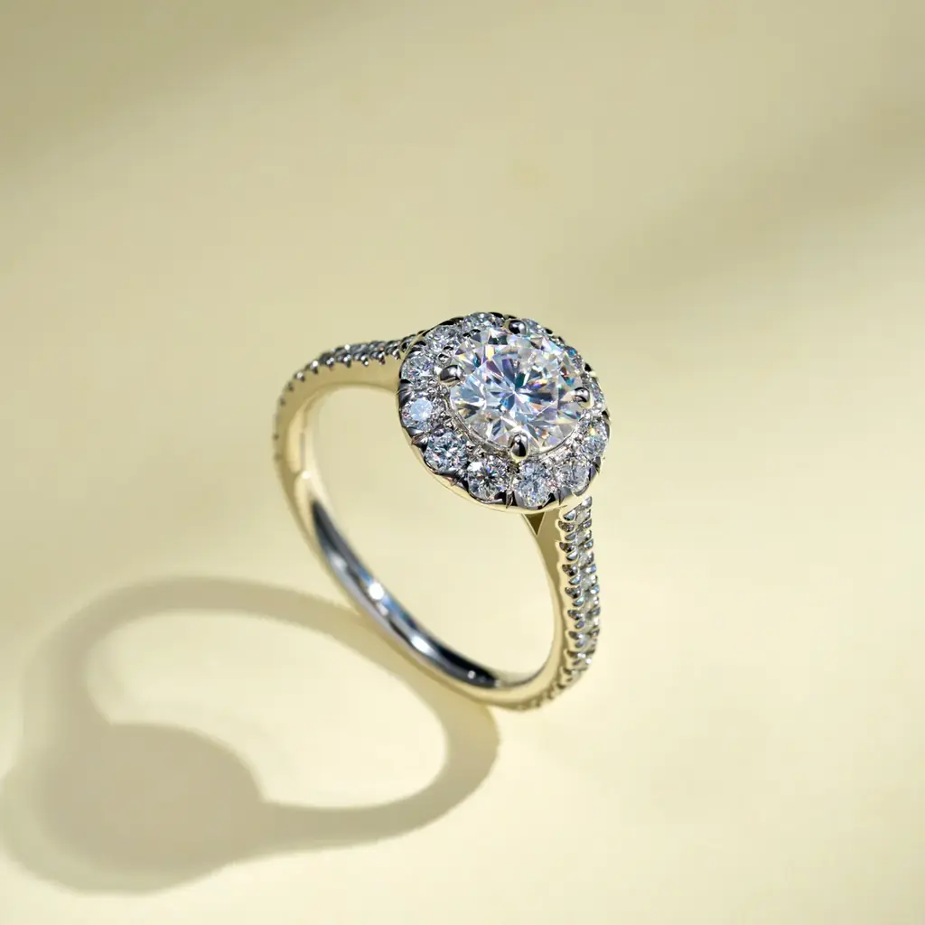新作は2型で、どちらもラウンドブリリアントカットのモアサナイトを用いた“ラウンド ハーモニアル ヘイロー”デザインです。基本設計は共通しつつ、用途に合わせた仕様や素材が選ばれています。