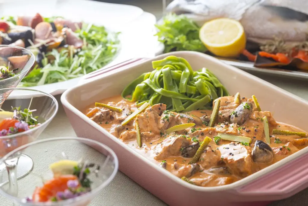 今回のフェアでは、郷土料理や地元の素材をトスカ流にアレンジしたメニューが多彩に並びます。シェフが宮城で選んだ食材を中心に、冷製・温製・アクションコーナー・デザートまで、現地の特色を生かした一皿一皿が提供されます。