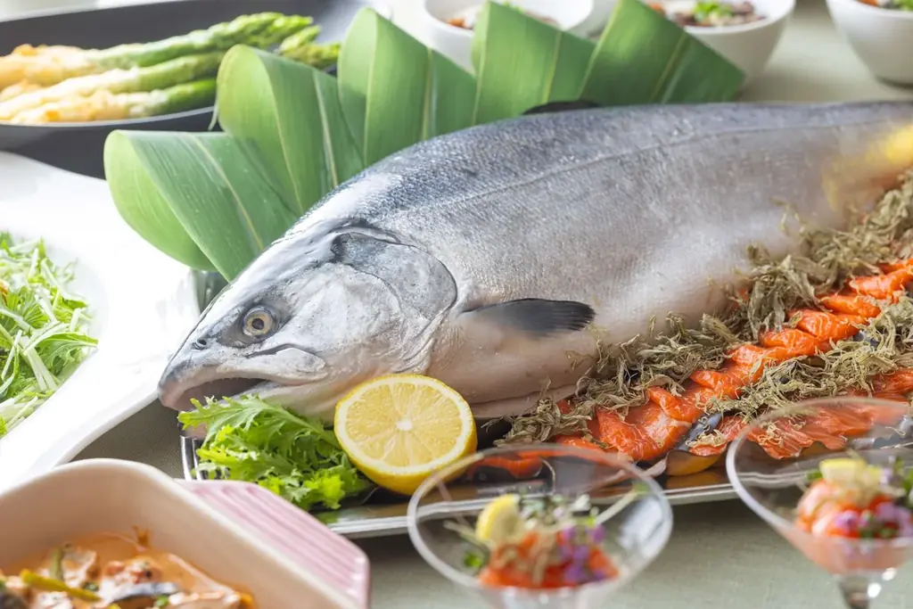 特に注目したいのは、宮城ブランドの肉や魚を活かした温製・冷製の両面からの料理構成と、アクションコーナーやスペシャルディッシュで提供される“その場で仕上げる”一皿です。説明にもある通り、三陸産の削り昆布で締めることで宮城サーモンの旨みが凝縮されるなど、素材の特長を意図的に引き出す調理法が用いられています。