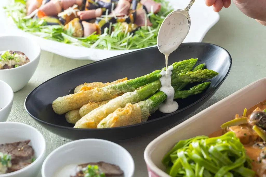 - アスパラの一本フリット 蔵王のクリームチーズのディップで