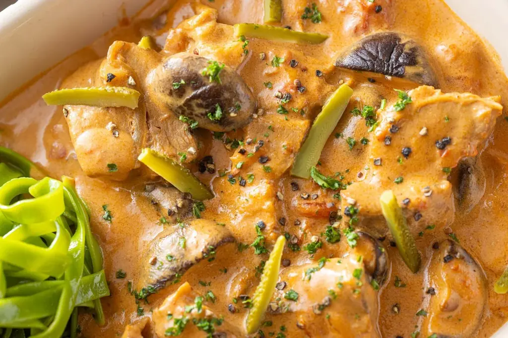 - 栗原市の水鳥しいたけとビーフのストロガノフ風