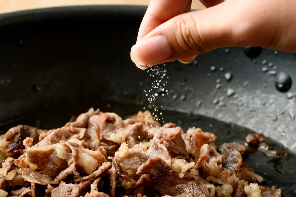 3)九州産黒毛和牛(経産)切り落とし(計1.2kg)+ピンク岩塩(あら塩・200g/ボトル付)