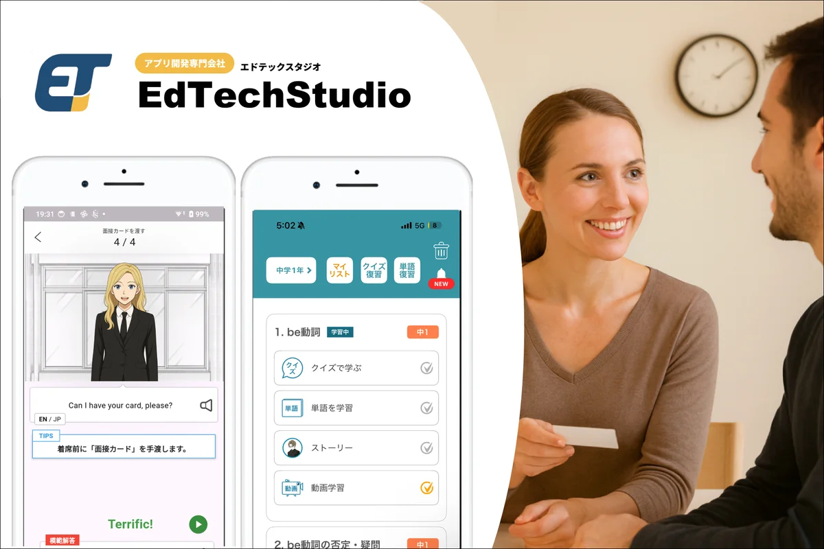 開発会社のEdTechStudioは、英語学習アプリを専門に開発するEdTech企業で、設計から開発、運用までをワンストップで手がけることを特徴としています。今回のアプリは、受験者が場所や時間を問わずに面接練習できる環境を提供する目的で開発されました。