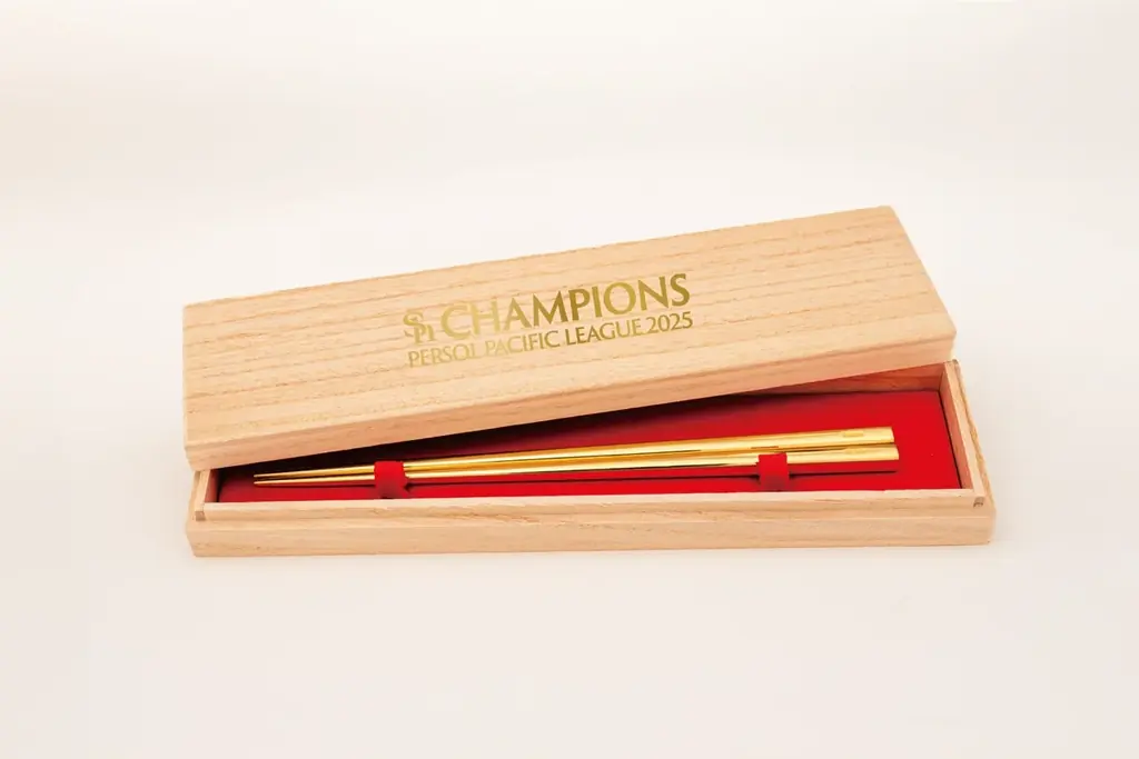 リーグ優勝を「掴んだ」ことにちなみ、幸運を「掴める」ことを願って制作された純金のお箸です。飾って楽しむ、眺めて楽しむ、そして実際に使うことも想定されたデザインで、日常に取り入れることで記念を身近に感じられる仕様です。