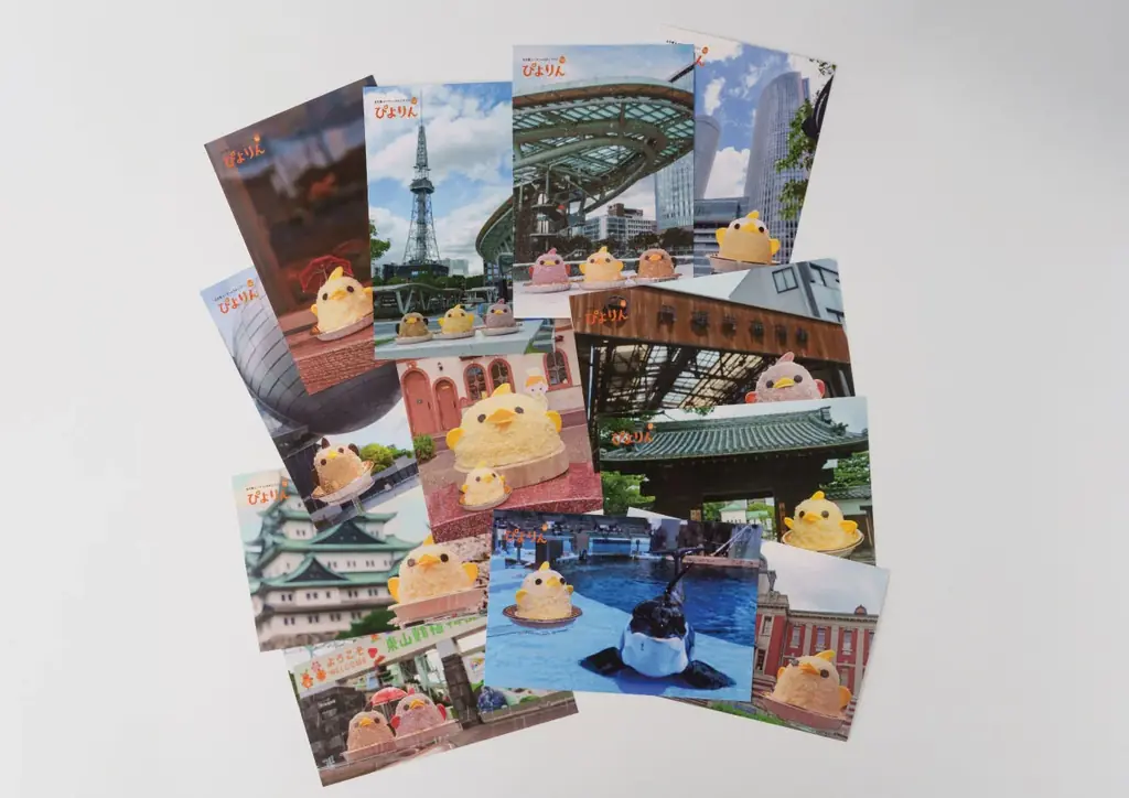 本カレンダーは名古屋の観光名所や「ぴよりんアトリエ」で撮影したぴよりんの写真を使用した12枚のポストカードが付属する特別仕様です。サイズは幅15cm×高15cm、価格は1,500円(税込)で、通常版と限定版は価格・仕様の差はなく、限定版には別途「ぴよりん切手」が付与されます。