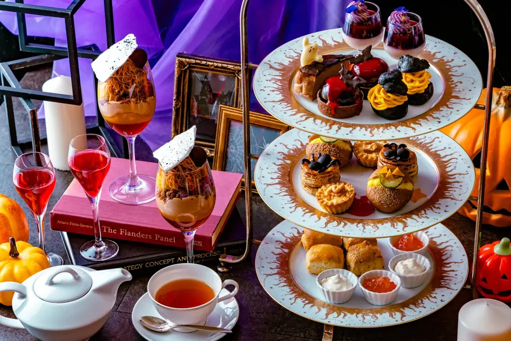 | ロビーラウンジ(アフタヌーンティー) | 2025/10/18~11/3 間の土休日限定(文面では~11/30の表記あり) | 第1部 12:00~14:00 / 第2部 15:00~17:00 | Marron Collection(血の海タルト、ハロウィーンブラックシュー等) | 大人¥5,800/こども(6~12才)¥3,480(会員割引あり) |