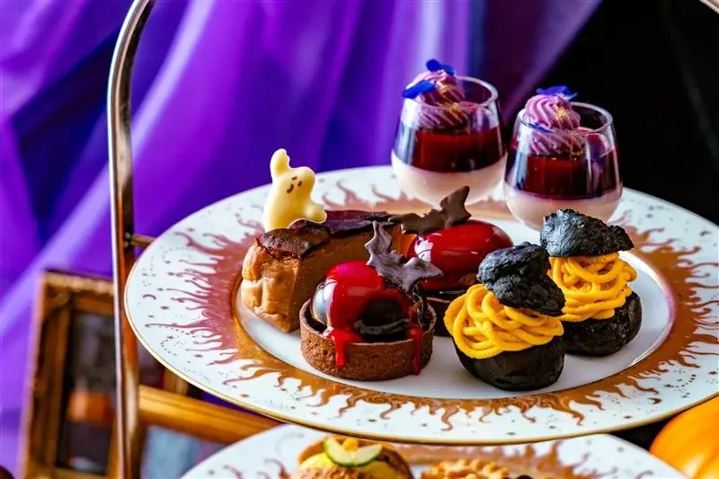 10月18日(土)から11月30日(日)と一部解釈される期間中、土・休日限定で開催されるアフタヌーンティー「Marron Collection」はハロウィーン仕様のスイーツが並びます。代表的なメニューとして血の海タルト、ハロウィーンブラックシュークリーム、そしてセットパフェとしてのハロウィーンモンブランパフェが含まれます。見た目と味のギャップを楽しめるラインナップです。