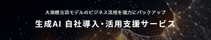 | 導入支援サービス | 生成AI 自社導入・活用支援(ハンズオン、カスタマイズ、検証〜導入・運用支援) |