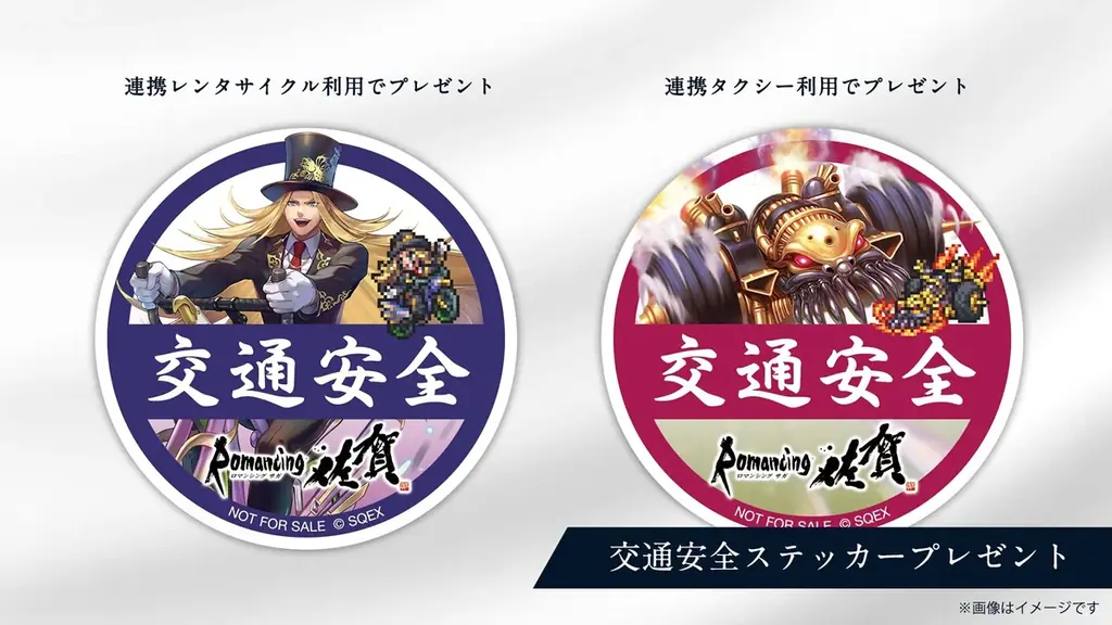 伊万里・有田の移動を支援するため、レンタサイクル(有田のみ)とタクシー事業者と連携した特典配布が行われます。対象サービス利用時にロマ佐賀のパンフレットを提示すると、交通安全ステッカーがプレゼントされます。景品はなくなり次第配布終了です。