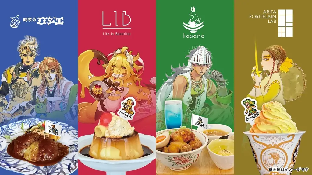 伊万里地域と有田地域の各店舗で提供されるコラボメニューは、佐賀県産食材を中心に設計され、作品世界のモチーフを取り入れた品目が並びます。メニューごとに提供期間、価格、提供店舗、営業時間、定休日、住所などが公表されています。ここではそれらをメニュー別に解説し、まとめ表で一覧化します。