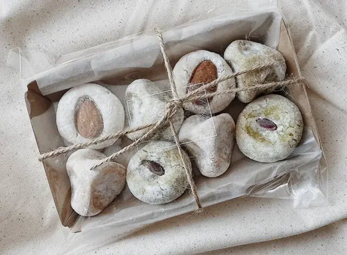 • 〈シチリアーモ〉 シチリア産リコッタクリーム / パスタ・ディ・マンドルラ:8個入 税込1,890円 — カンノーロ(揚げ生地にリコッタクリーム)とパスタ・ディ・マンドルラ(シチリア産アーモンドとピスタチオ使用)を実演で提供。