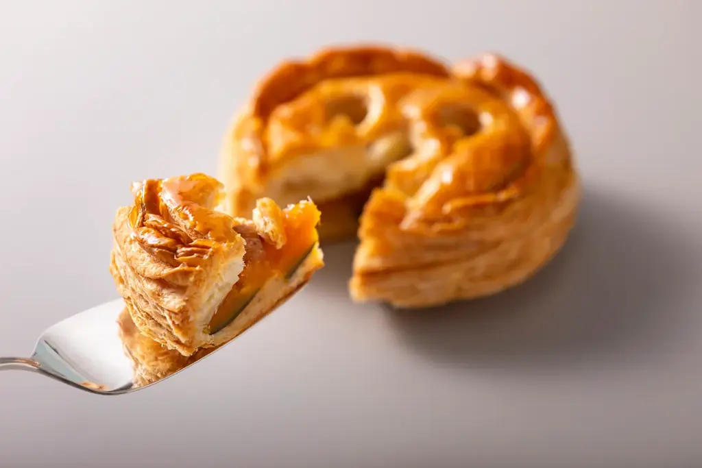 - 発酵バター入りパイ生地:香りの良さと口どけの良さを支える基盤。素材の水分と油脂のバランスを取り、焼き上がりの層構造を作ります。