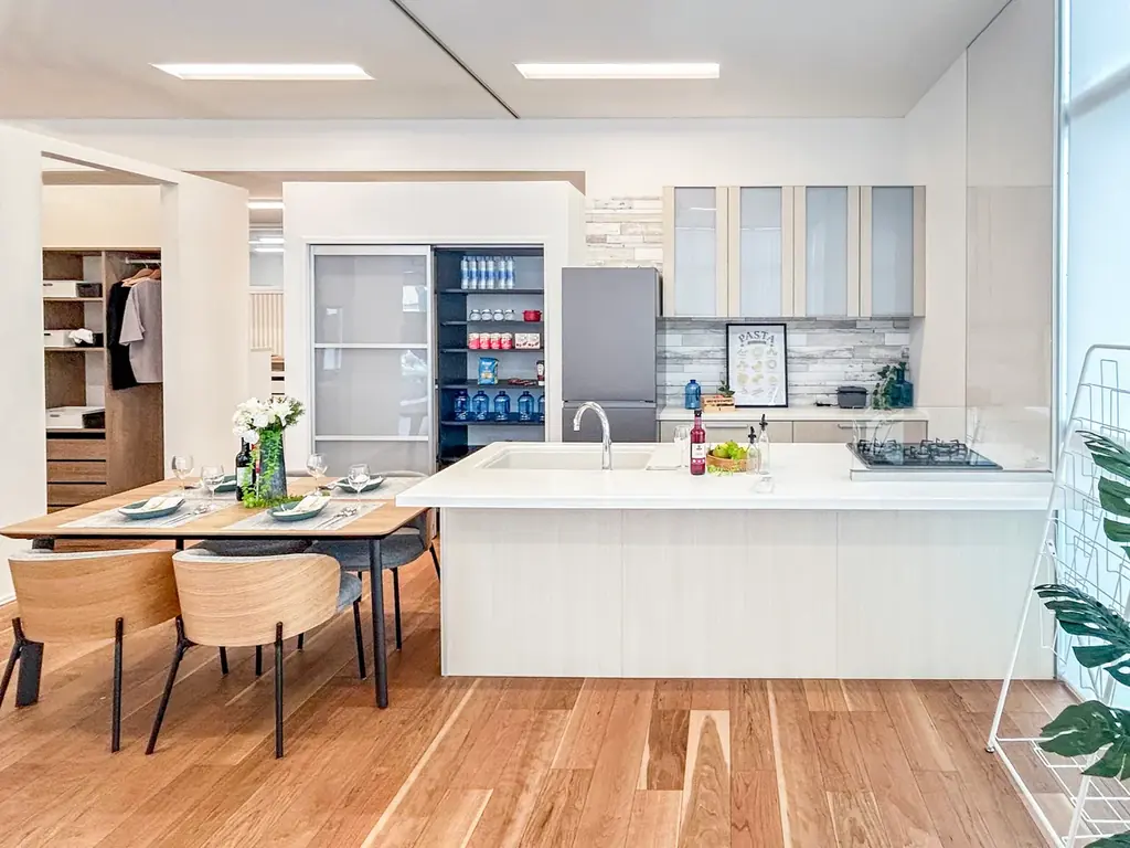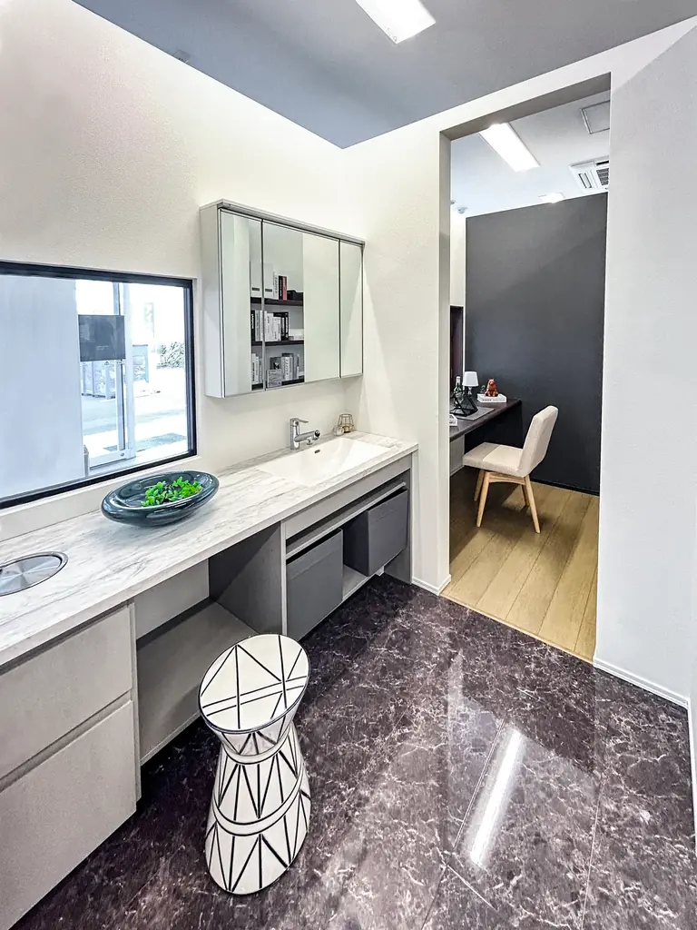 名取店は、キッチン・バスルーム・洗面化粧台など、最新の住宅設備や内装建材を展示するショールーム型の店舗です。来店者は実際に設備を見て触れることで、機能性やデザイン性を具体的に確認できます。住まいの検討段階にある方にとって、イメージを具体化するための展示が整っています。