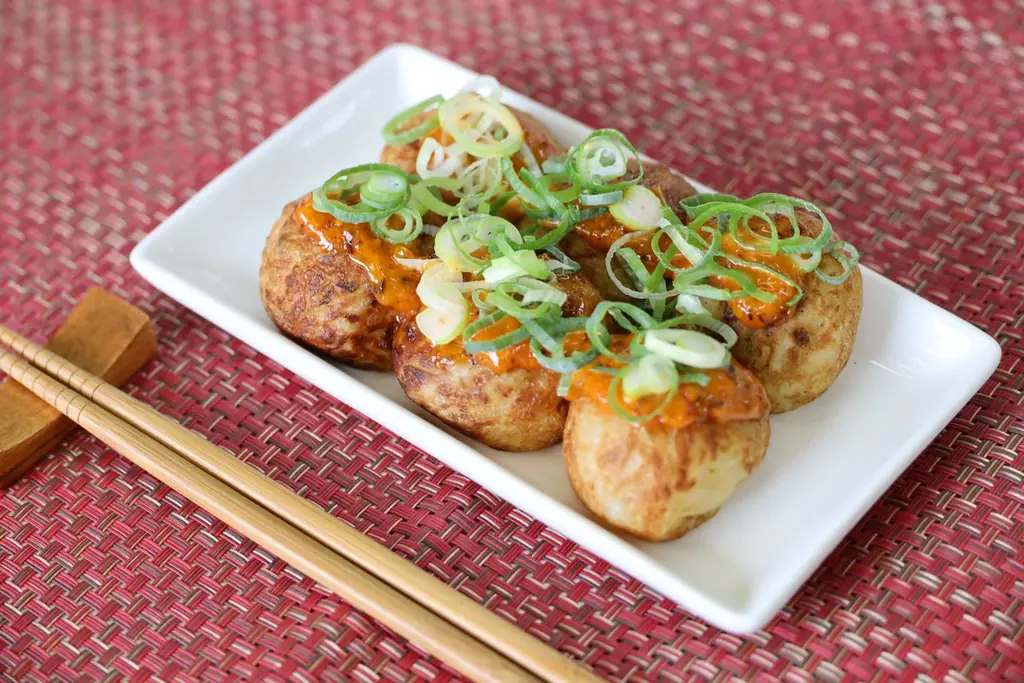 材料: 市販のたこ焼き6個、マヨネーズ 大さじ1、食べるラー油 小さじ2
