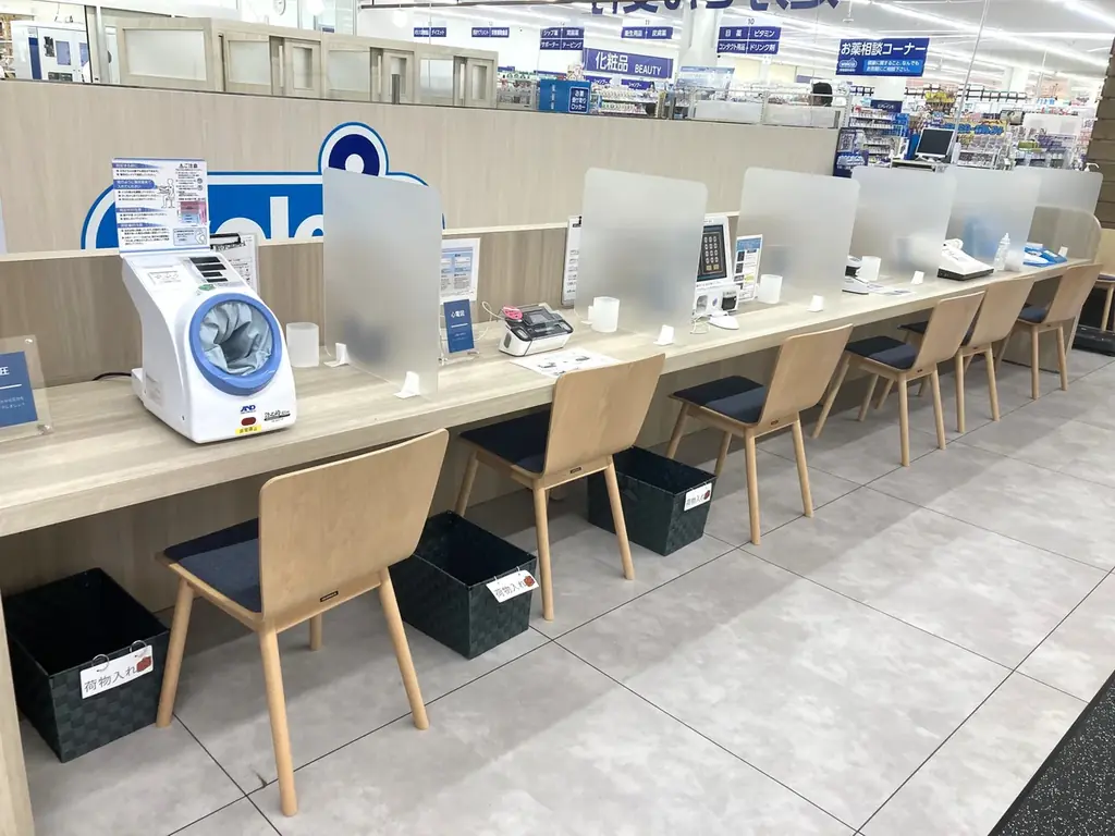 ウエルシア薬局が展開するCare Capsuleは、未病・予防を目的とした管理栄養士による栄養相談や各種検査、最先端のヘルスケア商品や機器の販売、コンディショニングサービスなどを提供しています。導入機器は店舗により異なり、体組成測定、糖化度(AGEs)測定、ヘモグロビン測定、心電計、血圧測定、骨健康度測定、血管年齢+ストレスチェック、野菜摂取度測定など多岐にわたります。