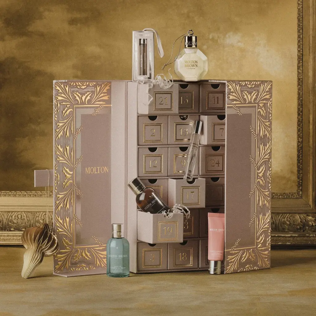 年に一度のみ登場する「モルトンブラウン アドベントカレンダー」は、限定ボックスに全24品を収めた特別コフレです。価格は48,400円(税抜:44,000円)。中身はボディケア、ヘアケア、フレグランスなど人気アイテムのミニチュアやレギュラーサイズを組み合わせた豪華構成です。