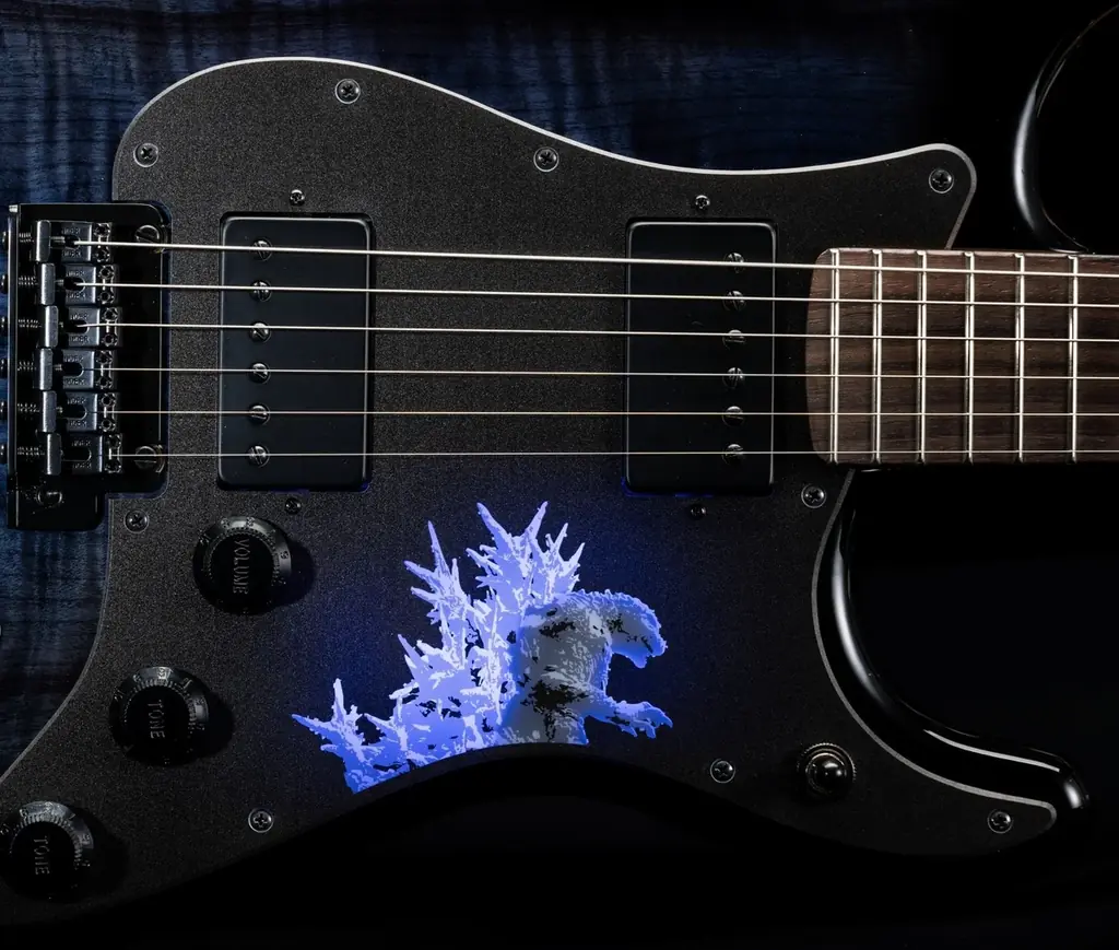 共通機能として、Tone 2ノブを押すと作動する内蔵ディストーション回路と、音量に連動してピックガード上の背びれが発光する「GLO – Gain-Linked Optics」機構(特許出願中)を搭載します。専用の“Custom Godzilla Humbucking”ピックアップも開発され、ヘヴィなサウンドを実現します。