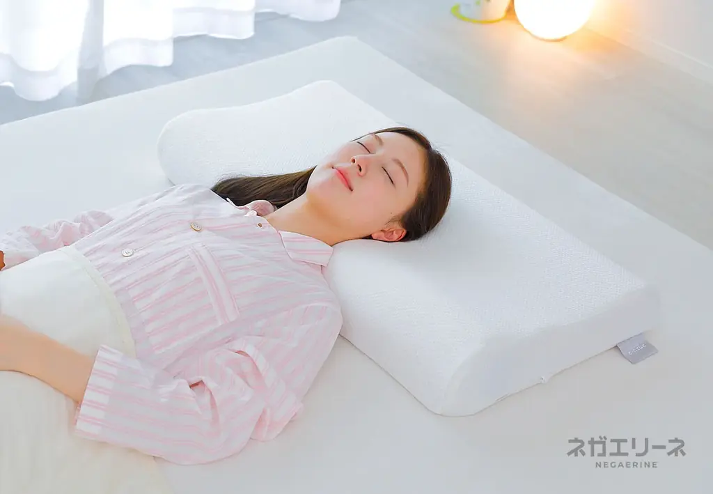 2025/10/2発売のネガエリーネは寝返りのしやすさを追求したワイド設計が特徴。寝姿勢を支える素材・構造で快適さを高めるシングルサイズ枕です。
