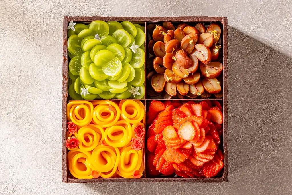 | Coffret de Trésor(コフレ・ド・トレゾール) | 50,000円 | 縦22cm×横22cm×高さ10cm | 限定5台。4種のケーキをベルギー産チョコ箱に収めた豪華仕様。さくらももいちご・あまりん・白銀のマンゴー・シャインマスカット・中山栗など希少素材を使用。 | 限定数。早期完売の可能性あり。 |