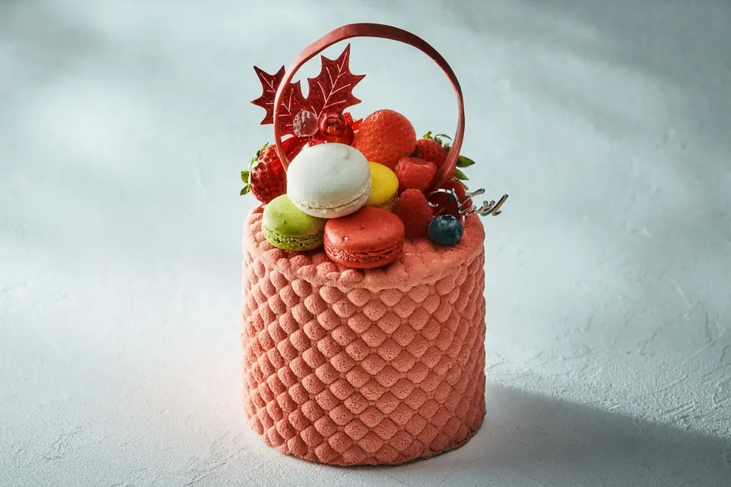 | La Poche Enchantée(ラ・ポッシュ・アンシャンテ) | 10,000円 | 直径12cm×高さ11cm | マカロンをあしらったバッグ風ケーキ。いちご・ラズベリーゼリー、ピスタチオガナッシュ、フィアンティーヌ使用。 | ビジュアル重視の華やかな一品。 |