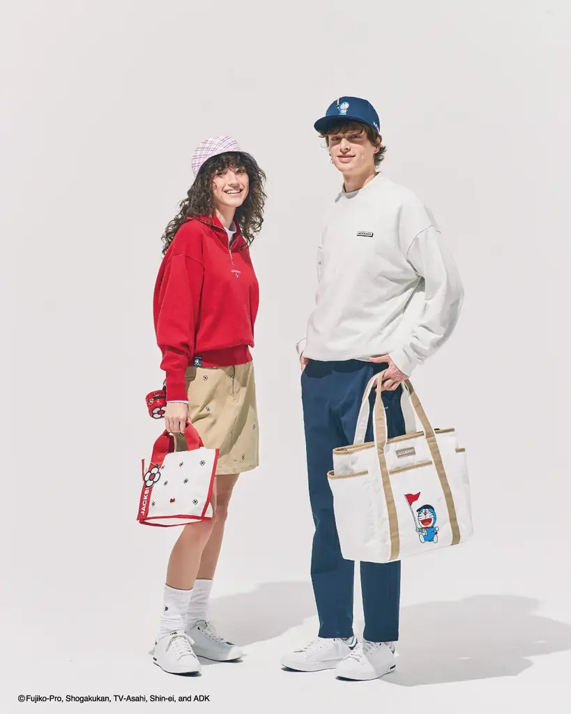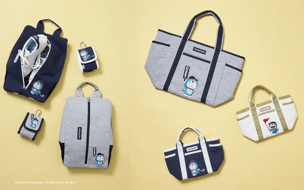 コレクションはゴルフ用品を中心に、ヘッドカバーやキャディバッグ、バッグ類、アクセサリー、アパレルまで幅広く揃います。既存のJack Bunny‼らしい機能性と、『ドラえもん』のモチーフを掛け合わせたアイテムが中心です。