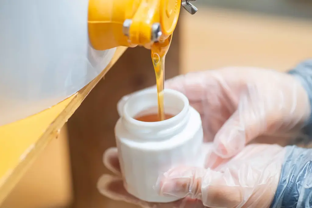 本製品の特徴は、自然のまま2年間熟成させるという工程にあります。熟成期間を通じて酵素や栄養素が活きた状態で保存され、一般的な西洋ミツバチのはちみつと比較して採蜜頻度が極めて限定されることも重要な特性です。西洋ミツバチでは年数回の採蜜が可能な場合がある一方で、日本ミツバチによる採蜜は年に一度、秋の約一ヶ月に限定されます。