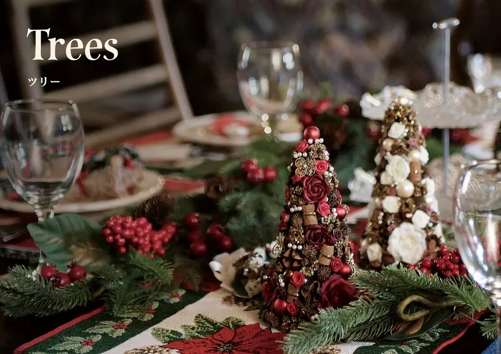 玄関やテーブルに置きやすい小型のクリスマスツリーや、飾り付きでそのまま飾れるリースなども揃います。オーストリアから届いた手作りツリー型スパイスオーナメントにはクローブなどの天然スパイスが使われており、置くだけでほのかな香りが広がる仕様です。