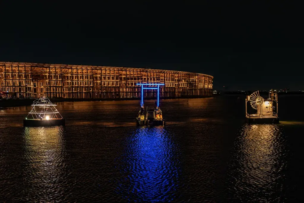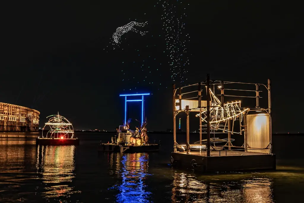 大阪万博で見る水上の光る鳥居、夜間展示の全貌