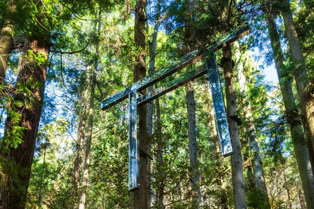 《鏡界の鳥居》は、SOWA DELIGHT 代表・渡邉辰吾が中之条ビエンナーレ2023で発表した作品を起点としている。制作には赤城神社からの思想的インスピレーションが深く関与しており、作品はビエンナーレでの展示後に赤城神社へ奉納され、拝殿に向かって右奥の森に設置されているという経緯がある。