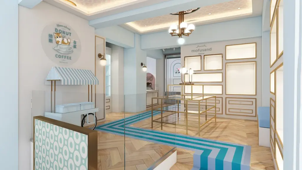 『mofusand TOKYO』は外装をドールハウス風にデザインし、内装にはガラスショーケースやブランドショップに匹敵する高級感ある什器を導入するなど、洗練された空間を目指して設計されています。POP UPショップでの賑やかな展開と対比して、落ち着いた質感を重視した店舗設計が掲げられています。