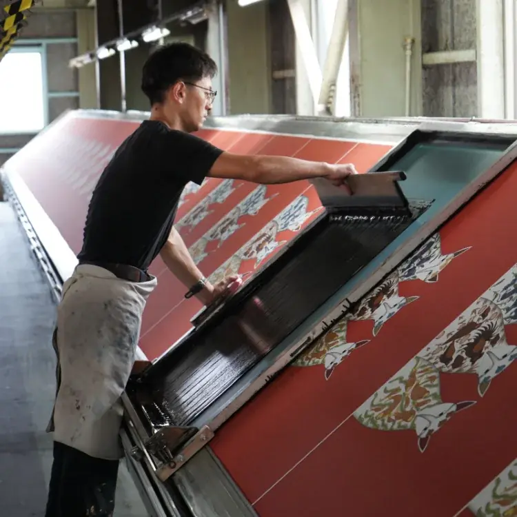 本コラボレーションを手がける株式会社 亀田富染工場は、1919年創業の京友禅の染屋で、6000枚以上の着物図案を所蔵しています。手捺染(てなっせん)による技法を得意とし、色鮮やかな染色表現を長年にわたって生み出してきました。