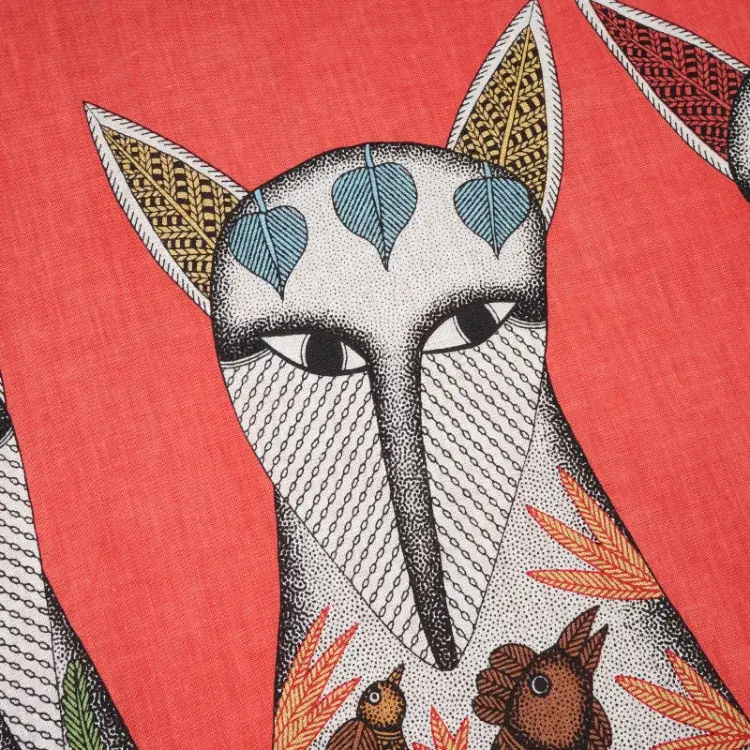 ゴンド・アートは自然や動植物、神話の登場人物をモチーフにしたモティーフが連続的に配置されることで画面全体が語りを持つ点が特徴です。バッジュ・シャームの作品群は、線や点を用いたテクスチャー表現、鮮やかな色彩設計、そして象徴的なモティーフの組み合わせで観る者に強い印象を与えます。