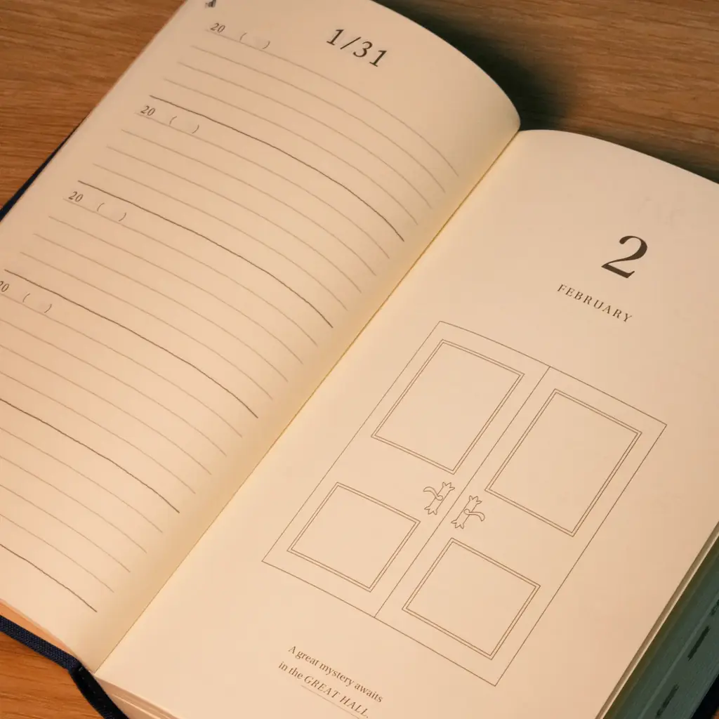 デザインの主な特徴として、表紙にボールトン邸の姿が配置され、各月の扉絵には豪邸内のドアがあしらわれています。また、プロローグにはゲームの主人公ウルスラの言葉が綴られており、ウルスラ直筆を思わせるメッセージ的な演出も入る仕様です。装丁はクラシカルで落ち着いた布張り、さらに特製ボックスとスリーブで装飾されることでプレミアム感を演出しています。