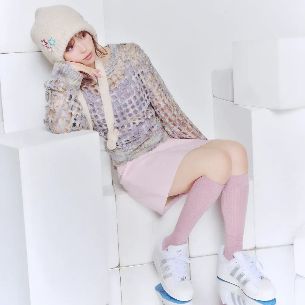 スニーカーにはアウトソールのグラフィティデザイン(例:”TOKYO”や”adidas”をモチーフ)をさりげなく施し、歩行時に見える“靴底まで可愛い”ディテールを加えています。こうした仕様は見た目のアクセントだけでなく、履き手の日常に寄り添うデザインの提案でもあります。