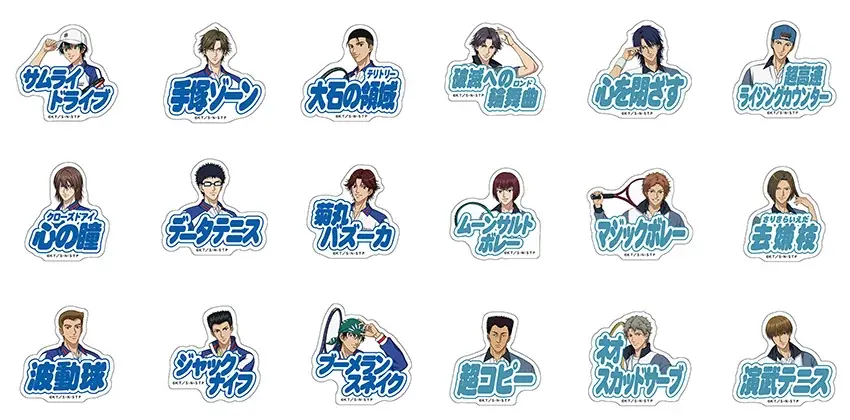 | 主な商品 | アクリルスタンド、キャラバッジコレクション(青学・氷帝)、アクリルキーホルダーコレクション(青学・氷帝)、アクリルリング、その他多数 |