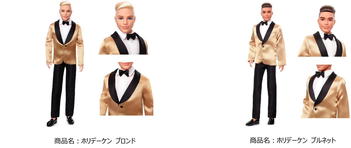 本リリースで発表された各商品のデザイン意図や仕様は、ホリデーシーズンの装いを意識した素材使いやアクセサリー構成が共通点となっている。バービーはゴールドとシルバーを基調とするフルレングスドレス、ケンはゴールドサテンのスーツ、アドベントカレンダーは着せ替えと小物の充実が特徴だ。