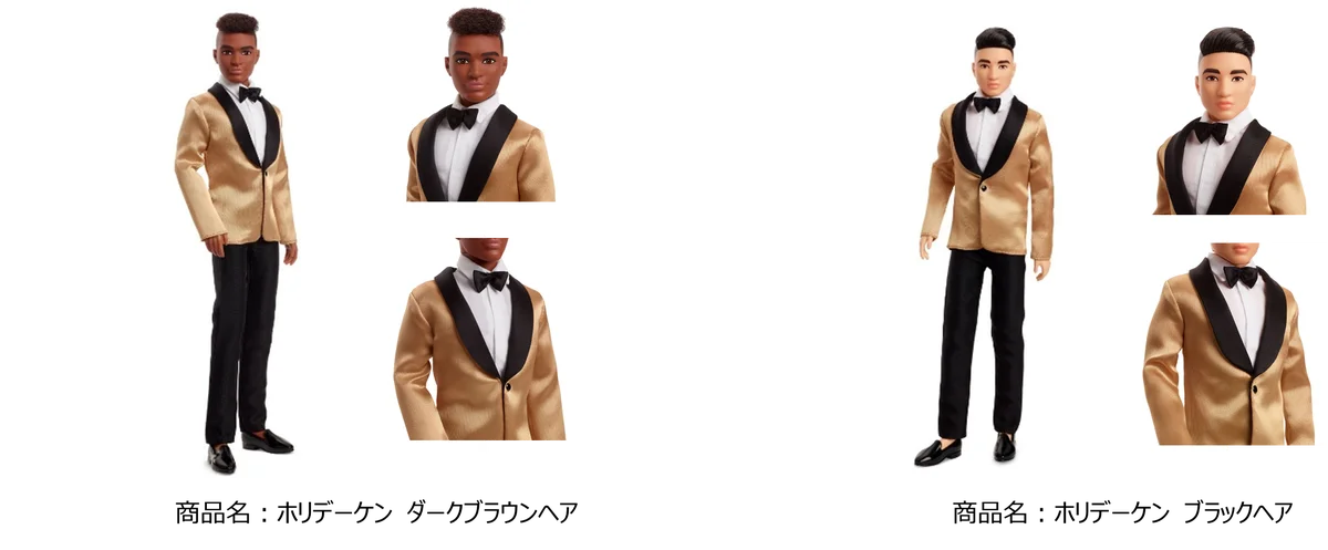 ケンはそれぞれ異なるヘアスタイルで展開され、個性や多様性を反映している。ホリデーバービーとペアで飾ることでコレクションとしての統一感が生まれる設計になっている。