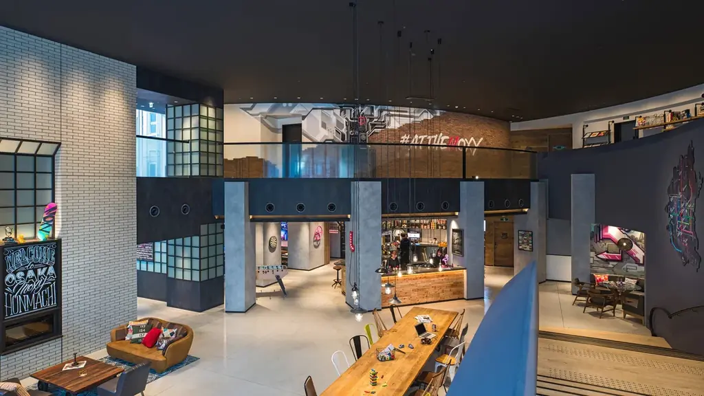 ホテルは本町駅から近い立地にあり、梅田や大阪城、心斎橋、難波など主要エリアへのアクセスが良好です。館内には24時間営業のカフェ&バーがあり、宿泊者以外も利用できる場としてイベントやDJナイトが定期的に開催されています。