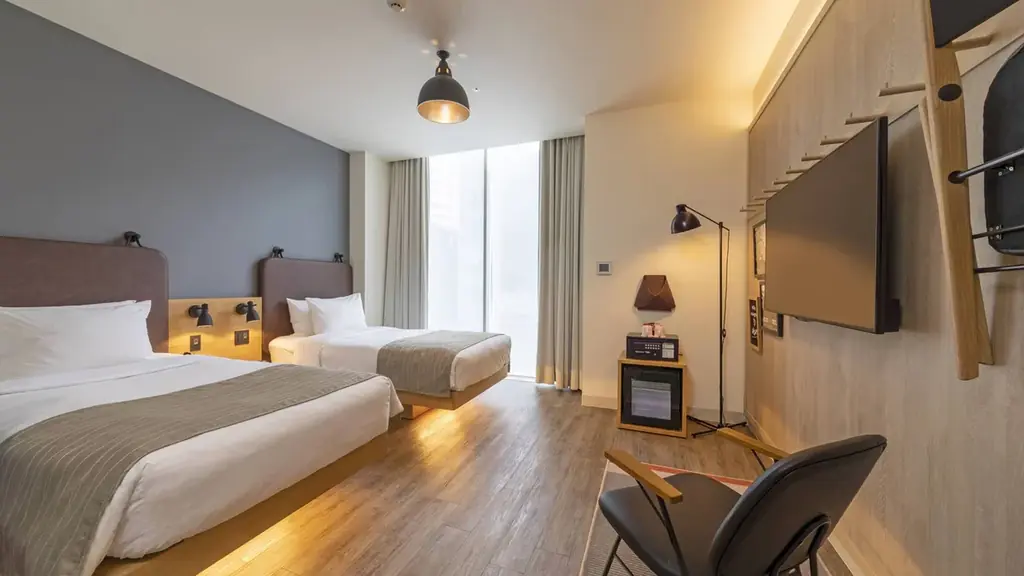 館内にはMoxyバーやロビーを中心に、自由なコミュニケーションとカルチャーの発信拠点としての機能が備わっています。客室はシグネチャーツインなど多様なタイプを用意しています。