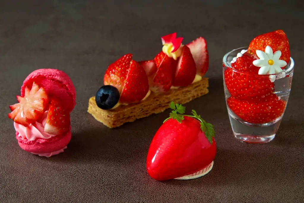- ミニグラスパフェ:いちごを5粒使用したミニグラスパフェ(いちごとチョコレートの組み合わせ)