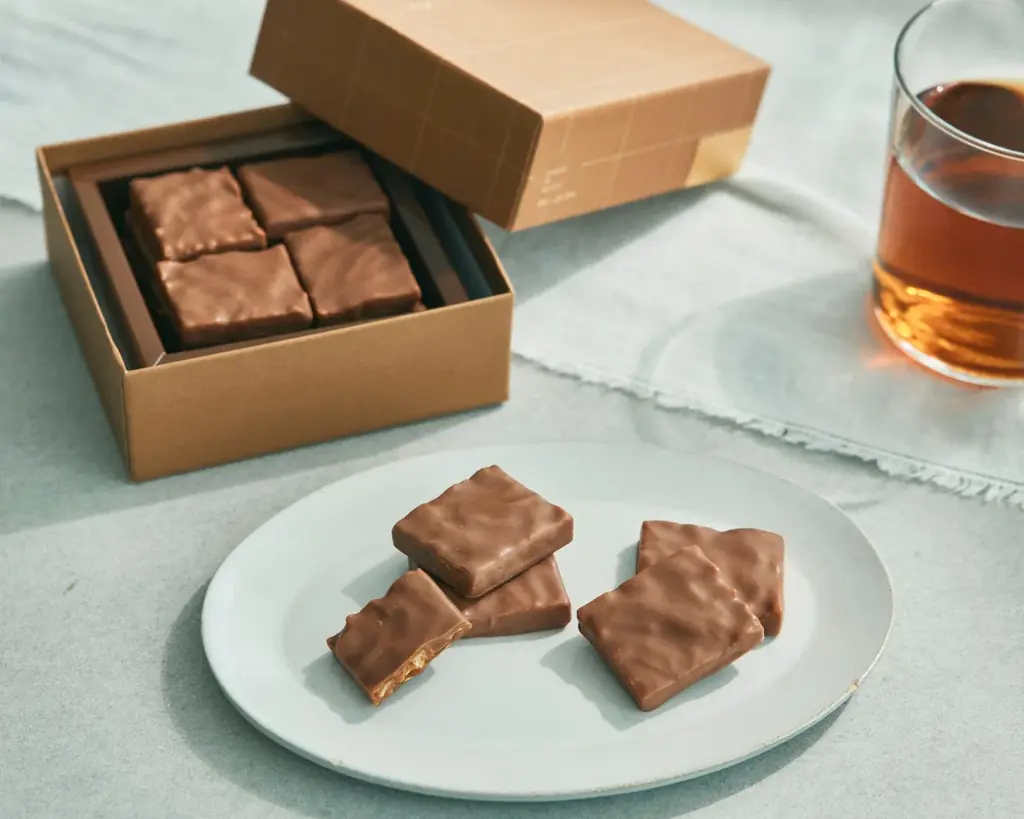 Croustillant caramel chocolat(クリスティアン・キャラメル・ショコラ)12個入 ¥2,808(¥2,600) 2025年10月23日(木) 午前10時~ 12個入箱タイプ(従来は6個入スタンドパックのみ) キャラメルにローストアーモンドやくるみを加えたヌガーをMurirのミルクチョコレートでコーティング。ザクザク、カリッとした食感。