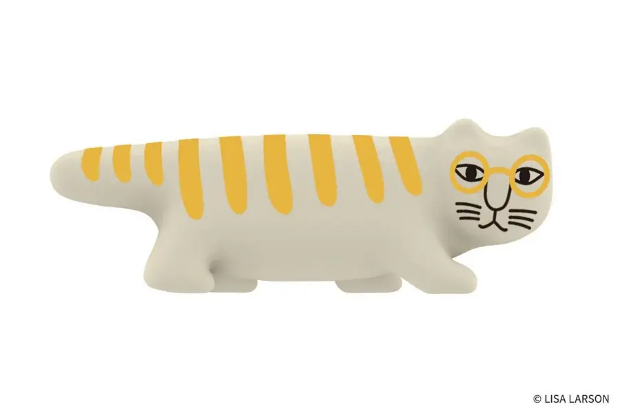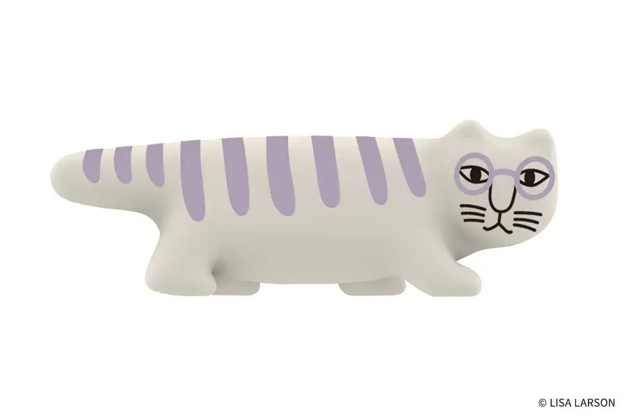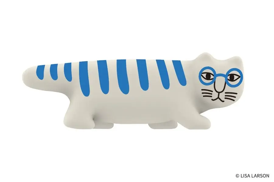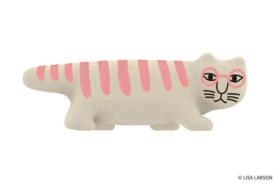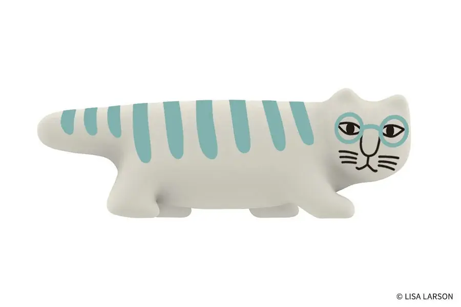 『猫のマイキーのメガネおき』はリサ・ラーソンコラボのオリジナルアイテムで、日常的にメガネを置く用途のほかインテリアとしても楽しめるデザインです。全5色が用意されていますが、色はランダムで届きます。