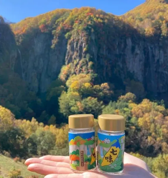 信州須坂観光協会が八幡屋礒五郎とコラボレーションして販売するオリジナル商品です。長野名物の七味唐辛子を米子大瀑布ラベルで展開し、お土産やコレクション向けに数量限定で提供されます。