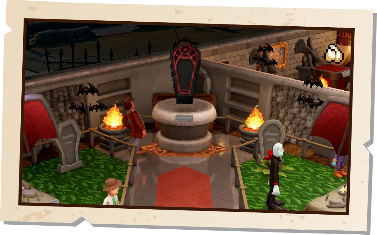 コラボによって追加される遠征マップは、『Vampire Survivors』の世界観を反映した3つの調査地点が中心です。これらの地点では、本作にちなんだ新展示物やスタッフ向けの装備が入手可能で、博物館経営に直接的な影響を与える要素が多数含まれています。
