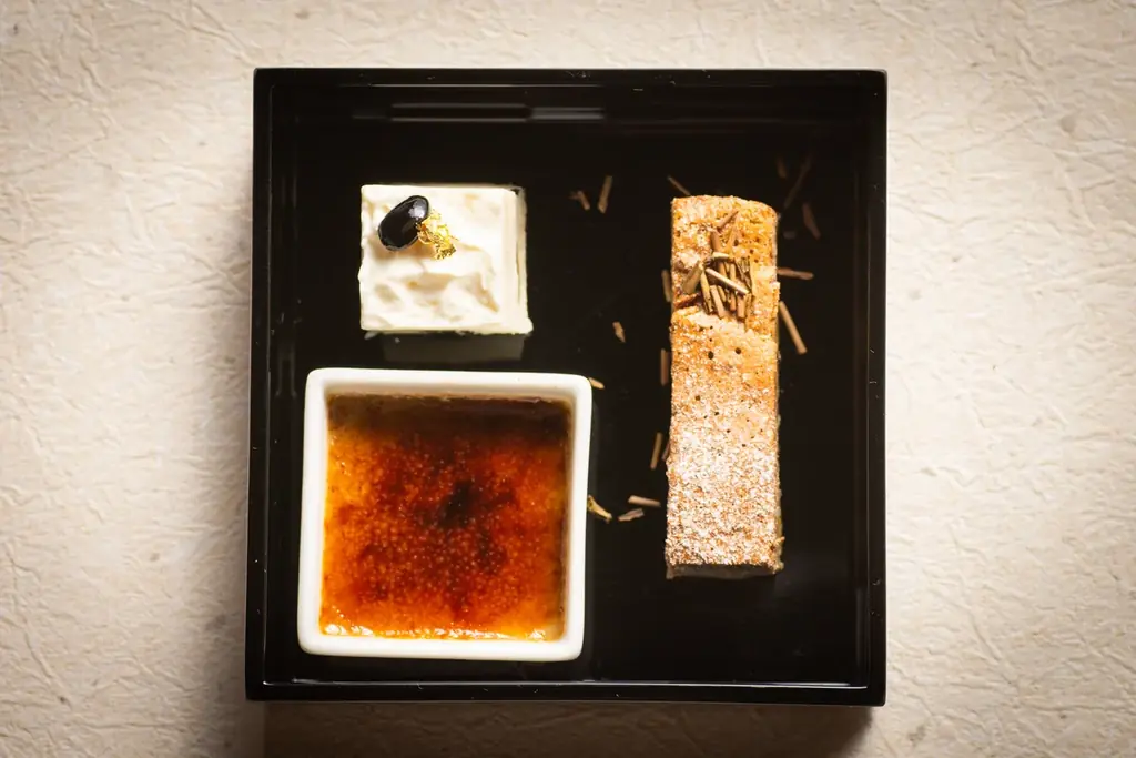 - 「雁ヶ音」使用 焙じ茶薫るなめらかなクレームブリュレ